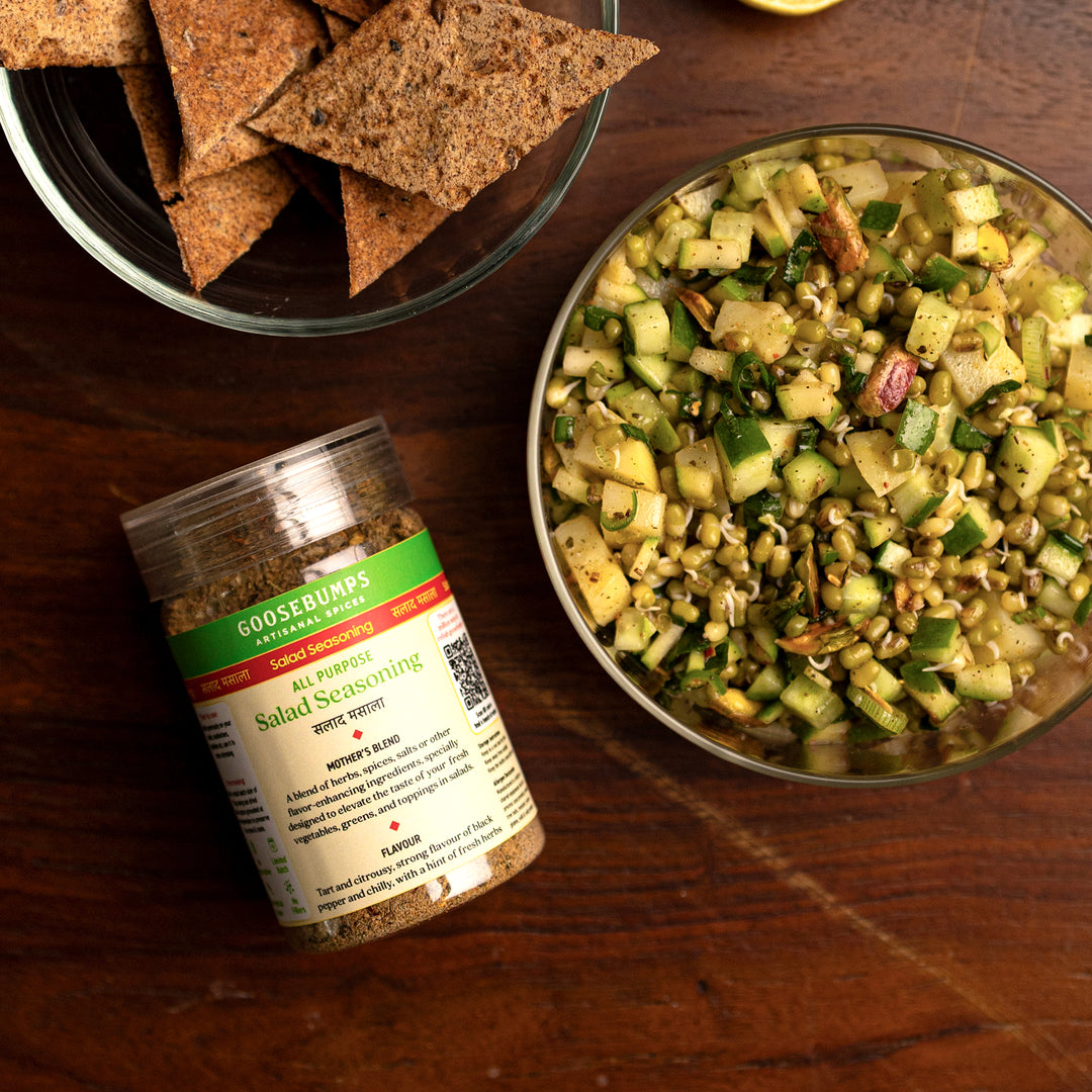 Discover the perfect combination of nutritious fresh green sprouts and raw mango in this vibrant salad. Packed with protein, fiber, and essential vitamins, this salad is not only a great way to fuel your body but also a treat for your taste buds. Featuring a medley of crunchy vegetables like cucumber, raw mango, and spring onions, it's seasoned with our In house blended salad seasoning.