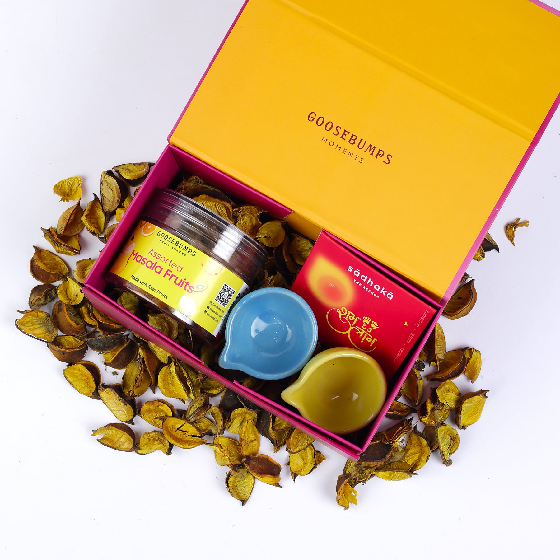 Carnival Gift Box of Masala Fruits, Diya & Décor