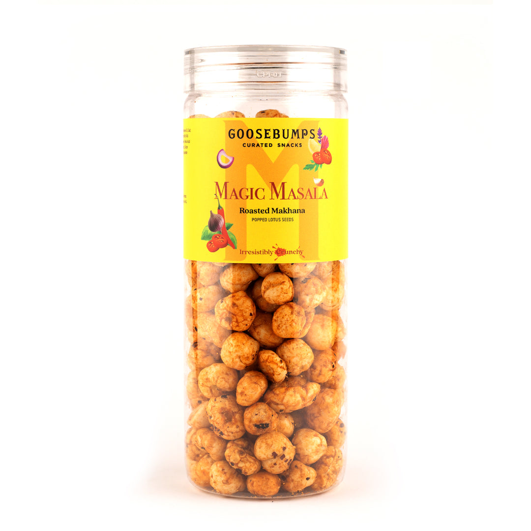 Makhana is a traditional Indian product that is anti-oxidant, light, and easy to digest. Goosebumps flavoured makhanas are all GLUTEN-FREE and MSG-FREE. They're roasted in olive oil and have a unique flavour, making them a great everyday spicy makhana snack for people of all ages.