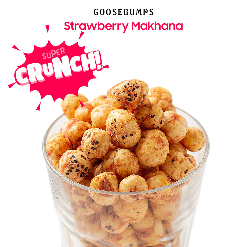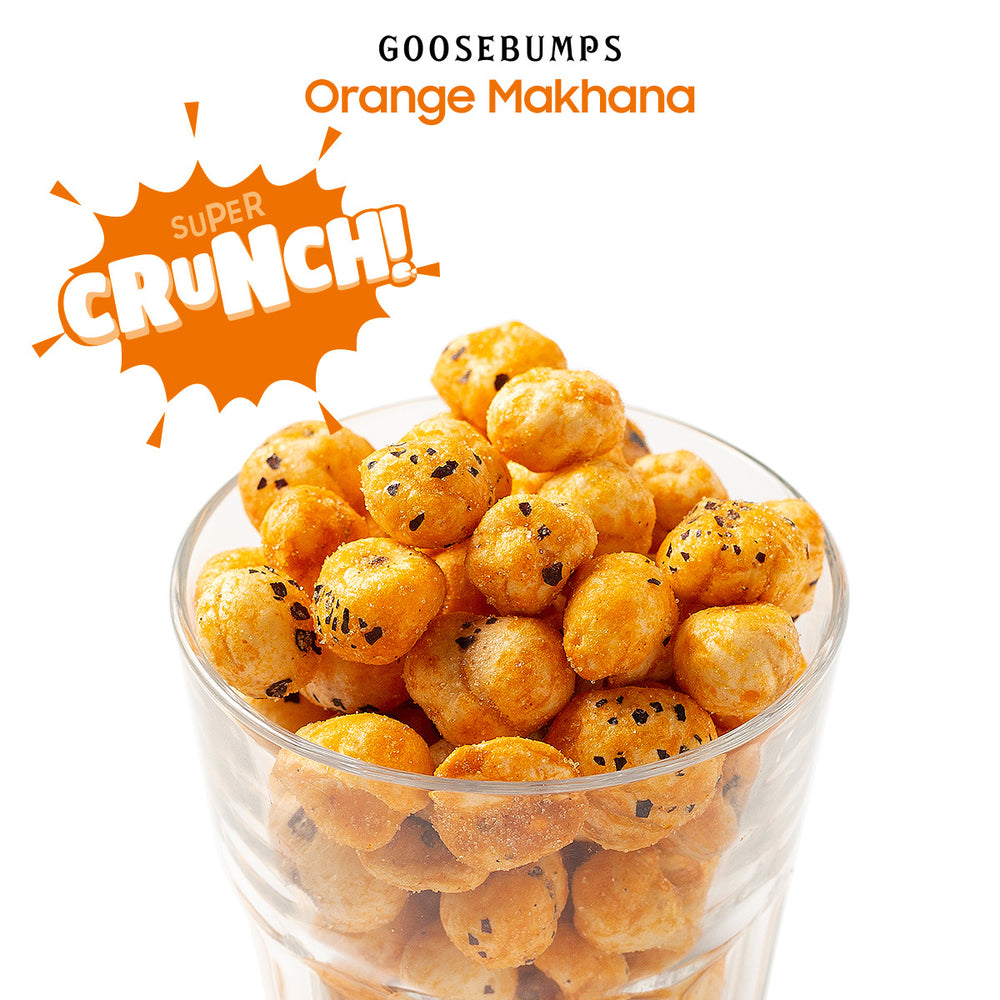 Goosebumps newly-launched fruit flavoured Makhana are a wonderful source of protein that are baked to perfection and flavoured with the intriguing flavour of Masala Orange and Masala Strawberry to elevate your snacking experience. Prepare to replace your regular cheese puffs with Goosebumps Chatpata Orange Makhana and Chatpata Strawberry Makhana, which are fiber-rich and gluten-free, and you can feast on them guilt-free. You can purchase makhanas online through the online Store of Goosebumps.
