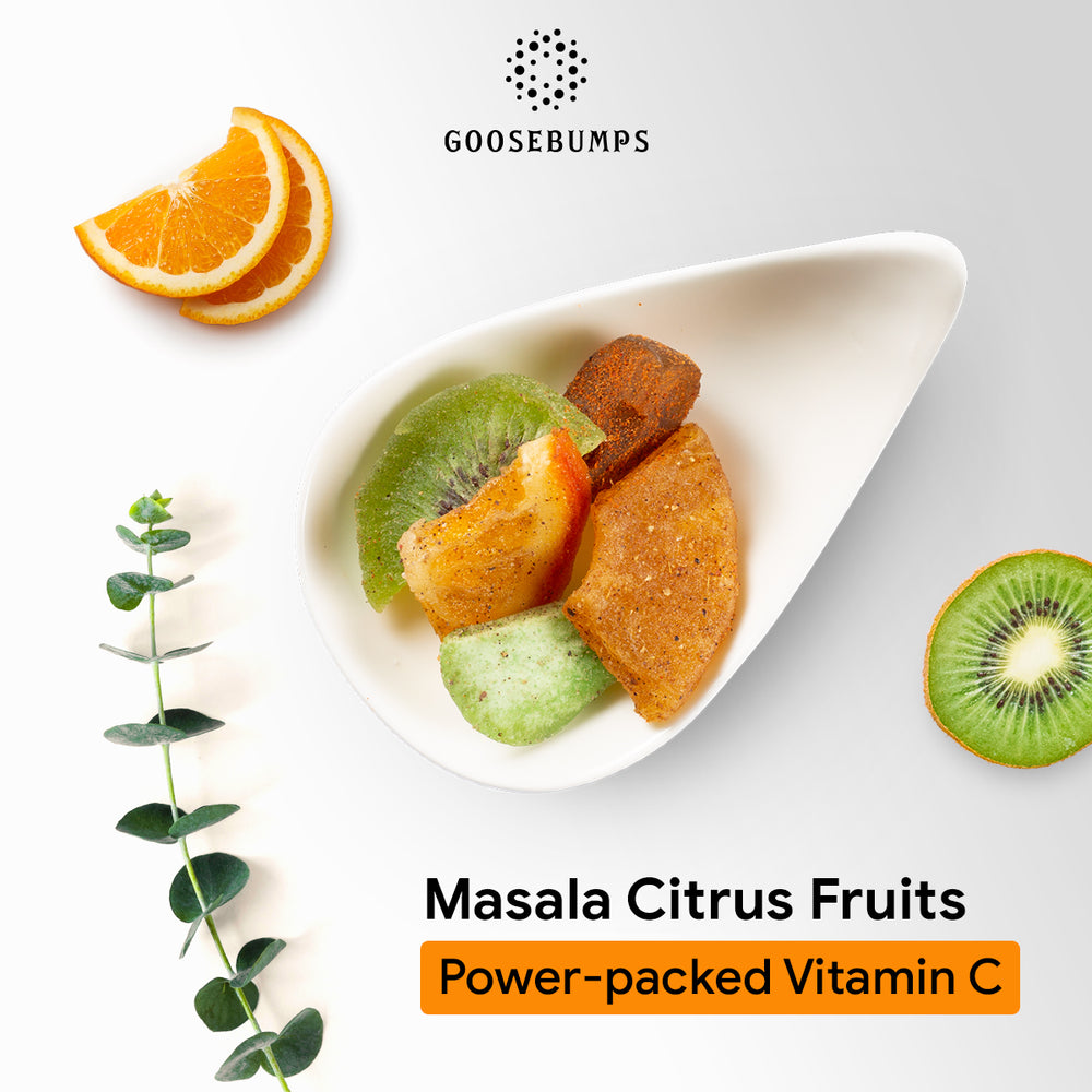 At Goosebumps we have come with a fabulous way to enjoy their natural goodness with the twist of masala, all through the year. Our wide collection of 30 masala fruits is mouth-watering and healthy delicacy that satiates your taste buds with its exotic flavour.