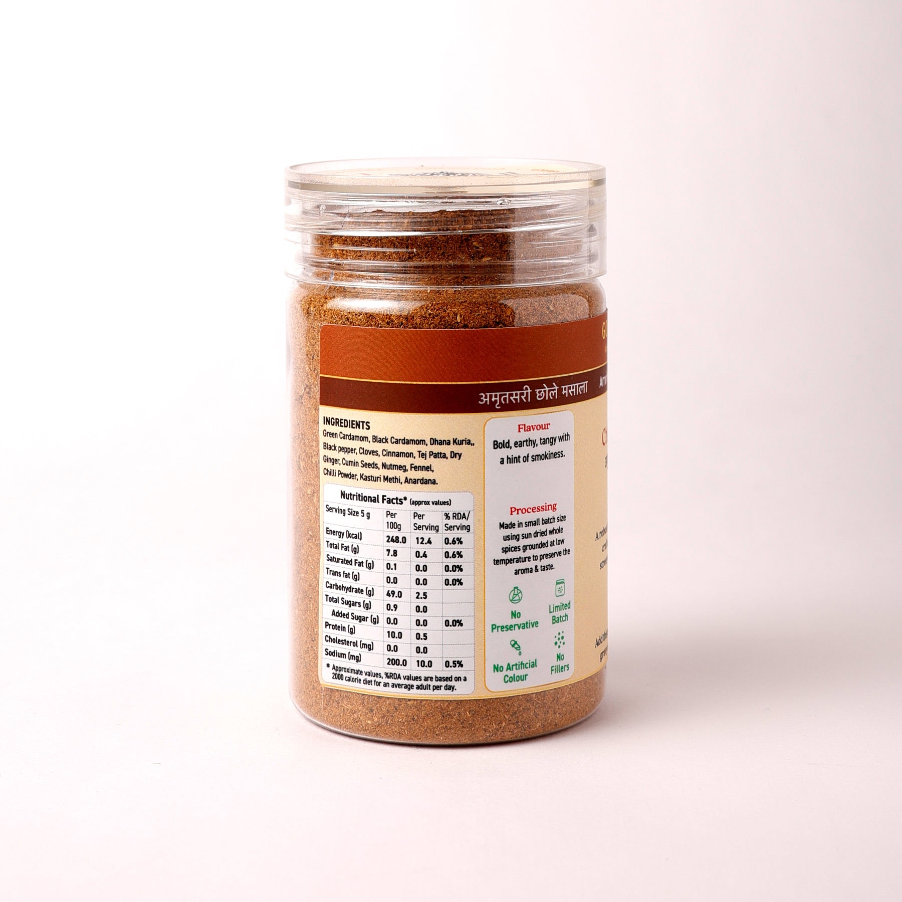 Experience the authentic taste of Amritsar with our Amritsari Chhole Masala. Crafted from a blend of handpicked spices, it delivers a bold, tangy, and aromatic flavor that makes a perfectly lapeta hua chhole. Add it toward the end of cooking for the perfect street-style experience.
